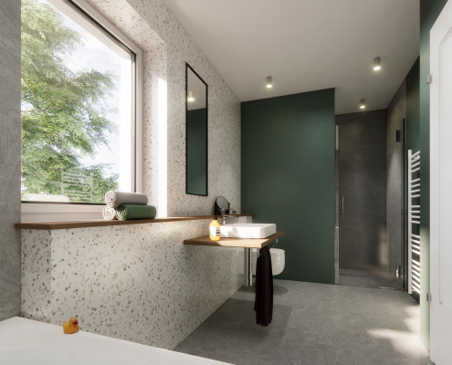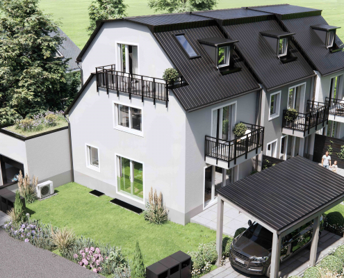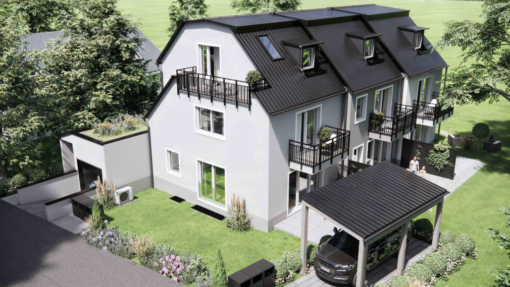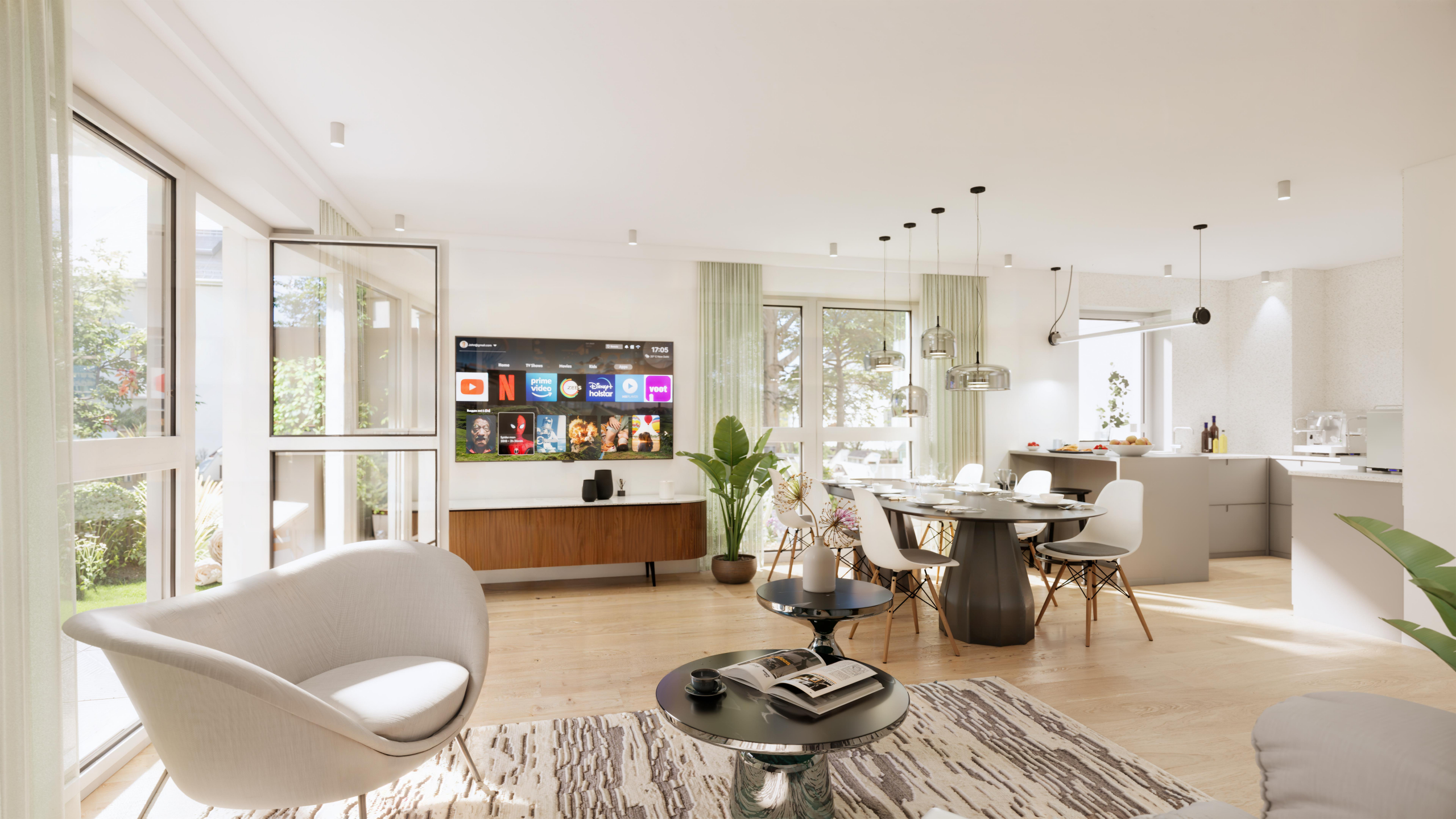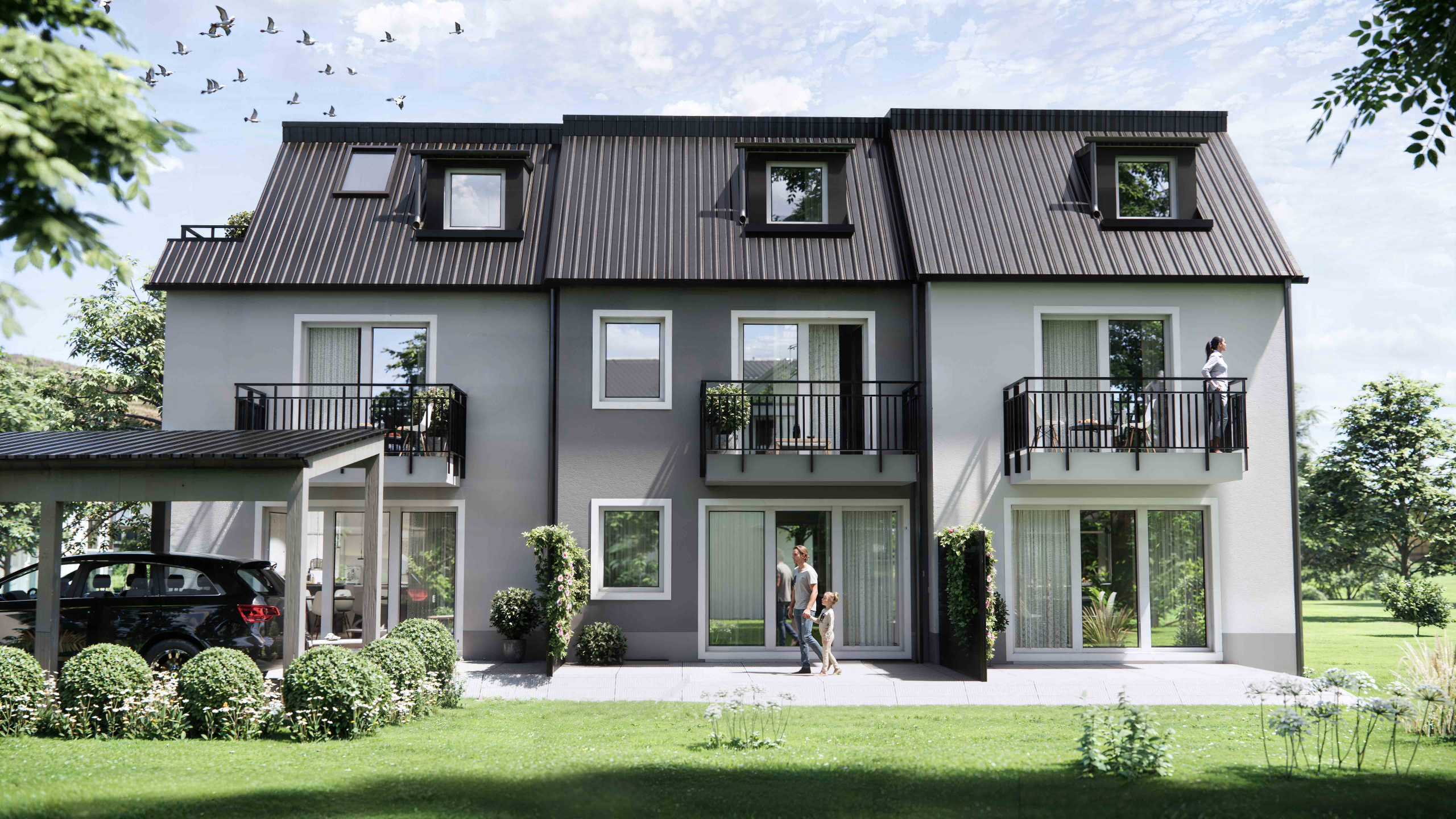 Abgerundet wird das Wohnkonzept durch private Gartenanteile mit Terrassen, die den Innenraum nach außen erweitern und das grüne Umfeld erlebbar machen. So entsteht ein Zuhause, das urbane Nähe und naturnahes Wohnen perfekt verbindet – ideal für Menschen, die Wert auf Qualität, Ruhe und ein modernes Lebensgefühl legen.