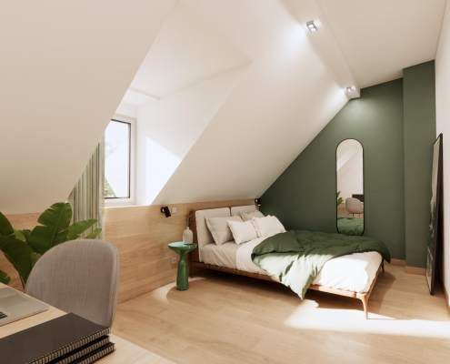 In den oberen Etagen entstehen helle, flexibel nutzbare Räume für Kinder, Arbeiten oder Gäste. Ein besonderes Highlight bildet das Master Bedroom im Dachgeschoss: Als private Rückzugsoase konzipiert, bietet es Ruhe, Großzügigkeit und ein Höchstmaß an Privatsphäre. Integrierte Ankleide- und Badbereiche unterstreichen den Suite-Charakter und machen diesen Bereich zu einem echten Wohlfühlrefugium.